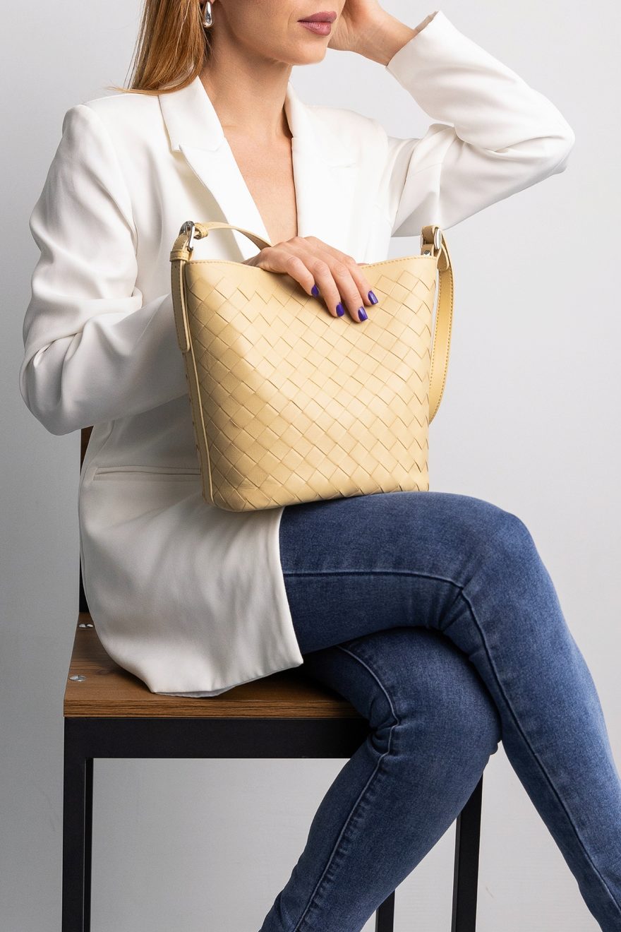 Почувствуйте вкус итальянского лета с этой невероятно стильной сумкой-ведром. Нежный нежно - желтый оттенок и изысканное плетение из натуральной кожи создают образ утонченной легкости. · Материал: Натуральная кожа. · Дизайн: Уникальное плетеное исполнение для игры света и тени. · Универсальность: В комплекте два сменных ремня для ношения в руках или через плечо. · Размер: 27х23х11 см - идеален для повседневных дел и шопинга.